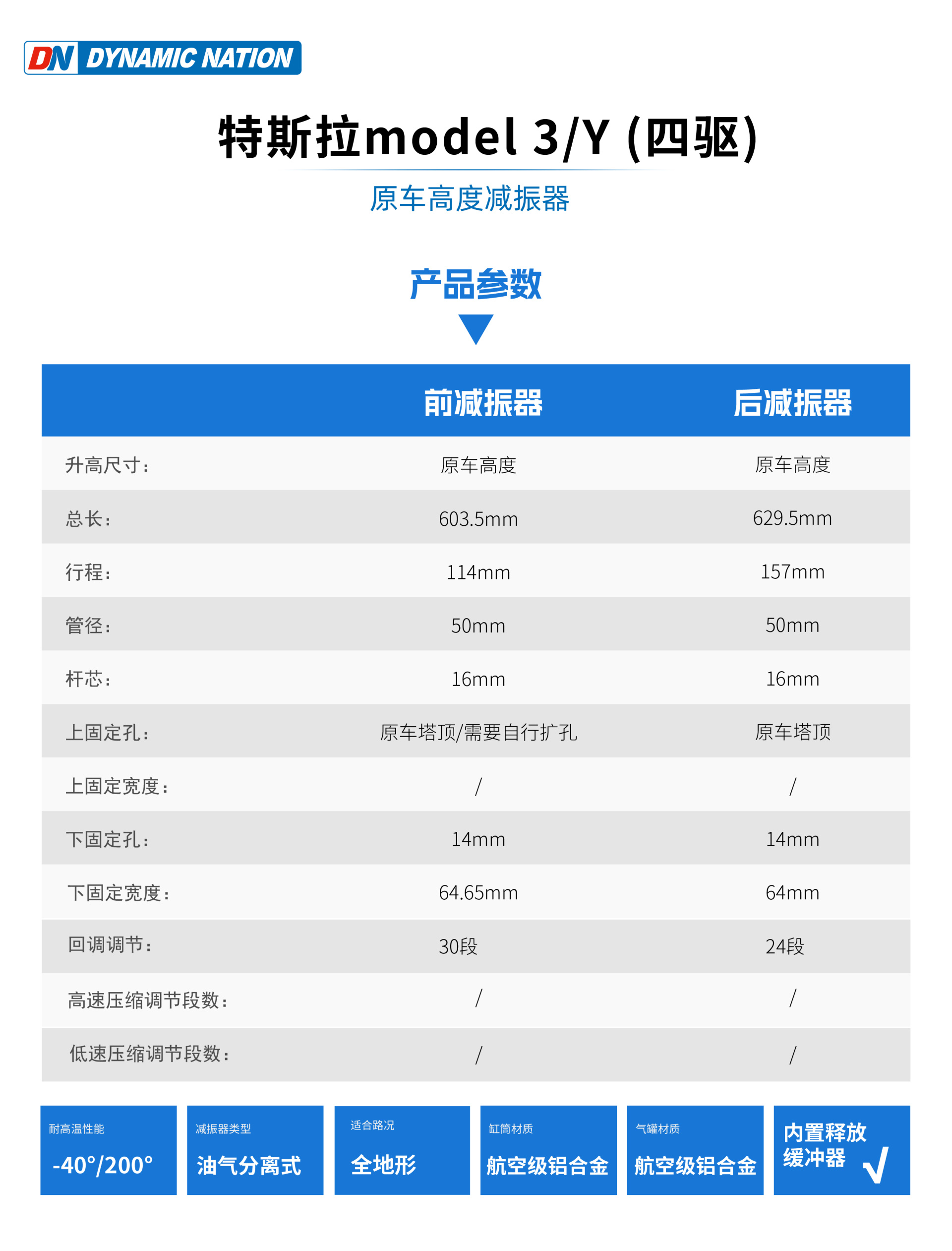 特斯拉model 3/Y(2驱) 2寸升高CDC电控主动减振器
