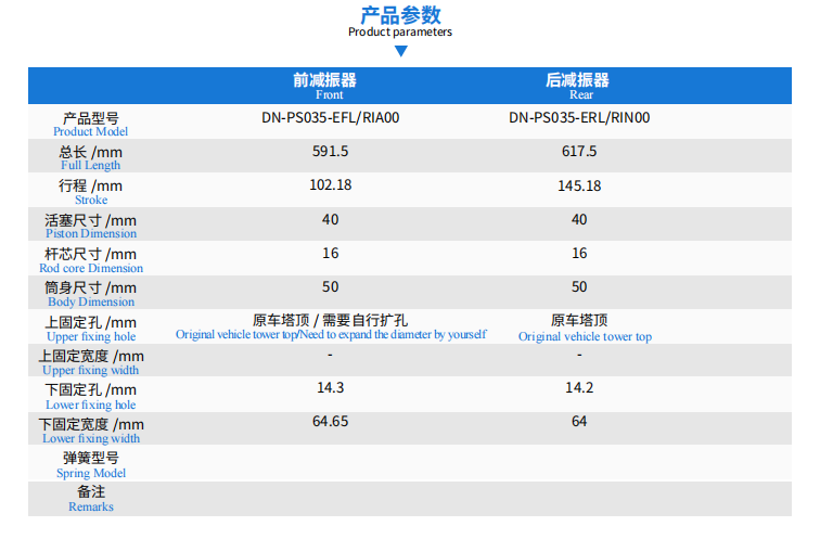 特斯拉 model 3/Y 原车高度 减振器(四驱)
