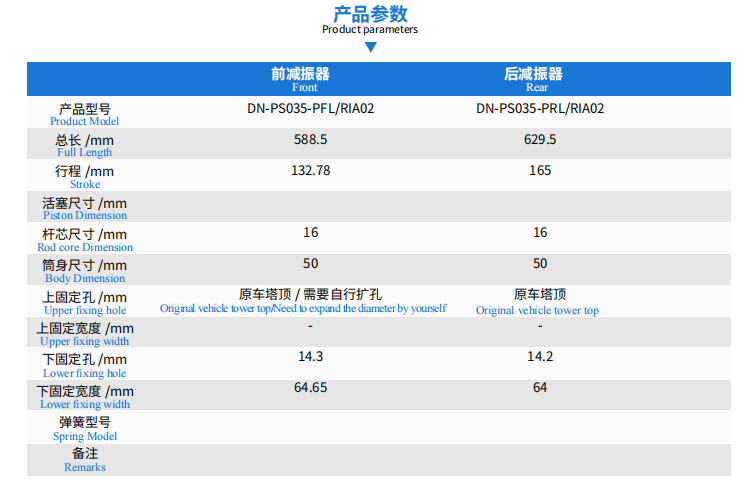 特斯拉 model 3/Y 原车高度 减振器(四驱)